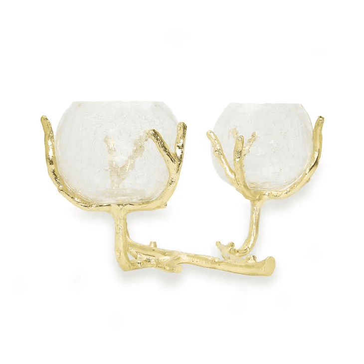 Gold 2 Branch Centerpiece – 11″L x 9.5″W x 6.30″H Glass – 4″D.